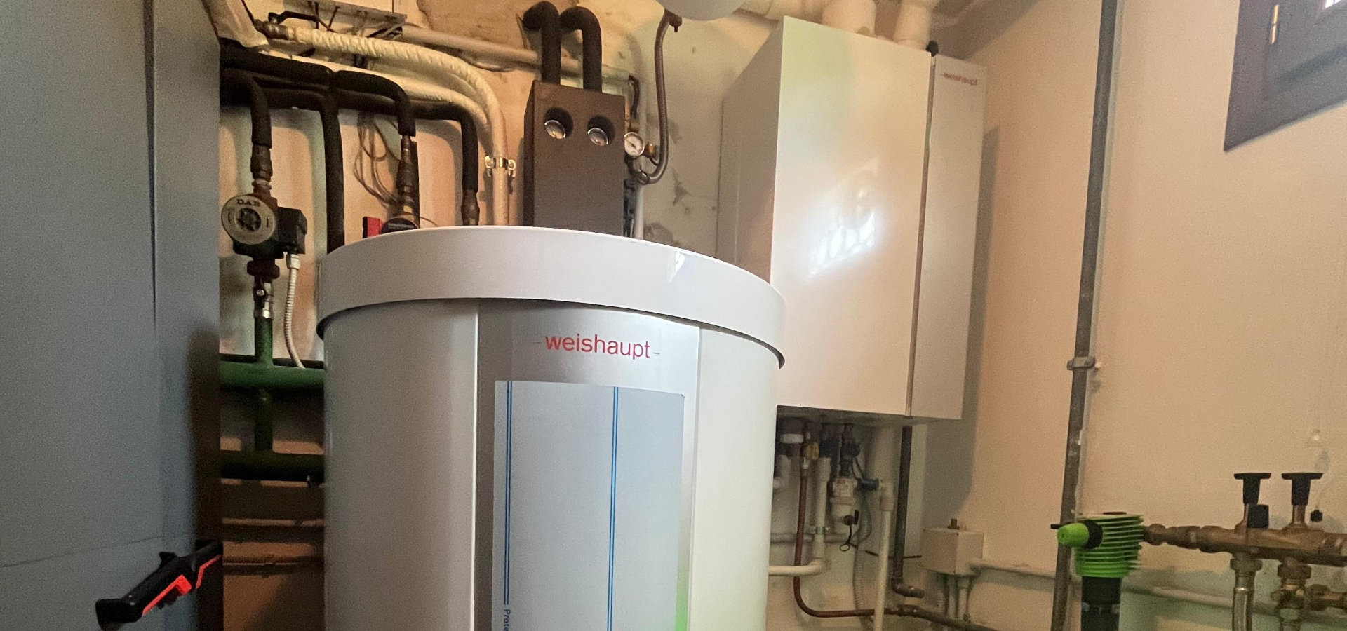 L’installazione ha previsto una caldaia a condensazione Weishaupt, bollitore con doppia serpentina e pannelli solari termici per riscaldamento e ACS, abbinati ai sistemi Grünbeck per il trattamento dell’acqua: addolcitore SoftliQ, dosatore exaliQ e filtro BOXER RX a risciacquo automatico.